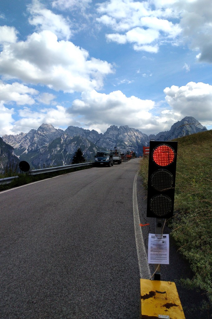 Der lange Weg nach Ampezzo (nicht zu verwechseln mit Cortina d’Ampezzo) war ein gemütliches Geschlängel durch lange einsame Täler. Wobei: wenn das Messer zwischen den Zähnen beim Pässestürmen fehlt, dann richtet sich die Aufmerksamkeit auf die Schmerzen am Hintern. Diese „Sitzbank“ ist trotz 75-Euro-Superpolsterunterhose ein Folterbalken. Das muss anders werden.
