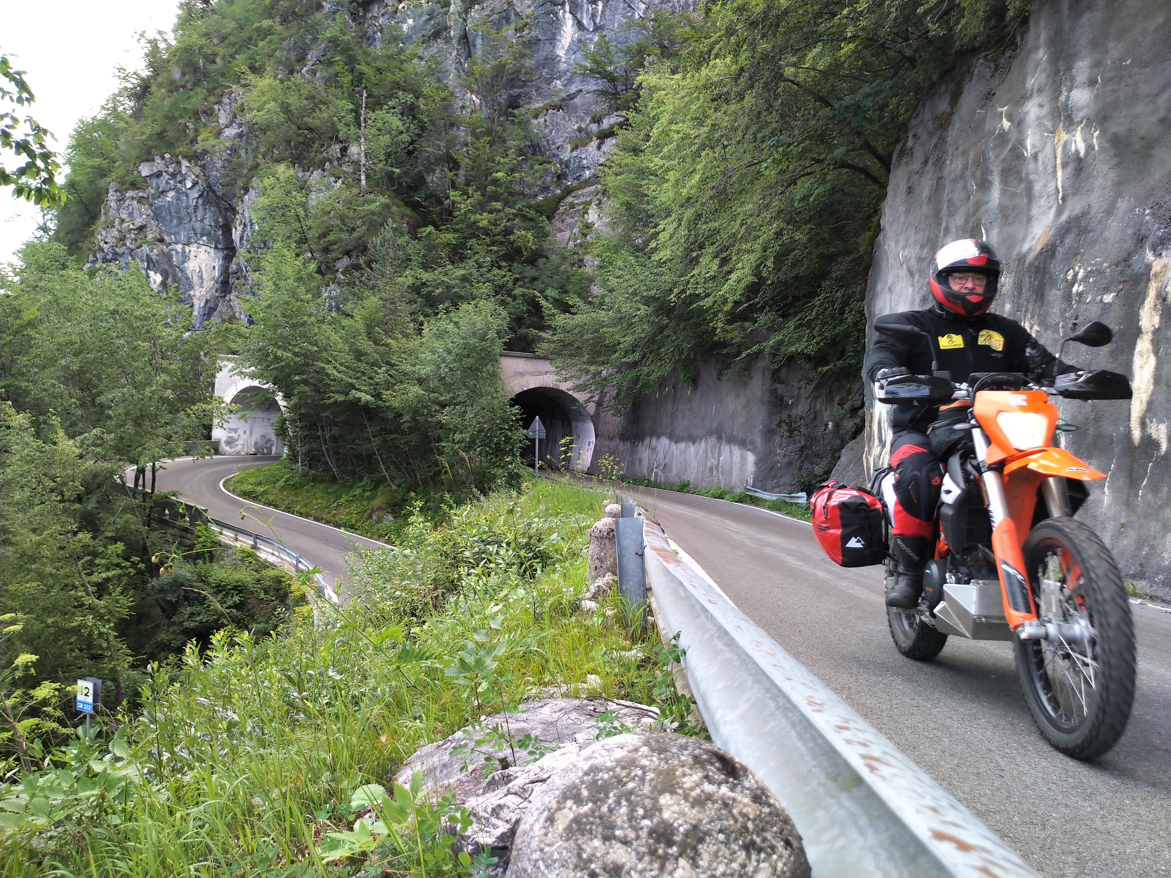 Der Abzweig zum ersten Pass, eine schöne kleine Straße, war zwar beschildert mit einem Baustellenschild und auch ohne italienische Sprachkenntnisse entzifferbar als „Straße gesperrt“ , aber das kümmert einen Motorradfahrer in der Regel weniger.