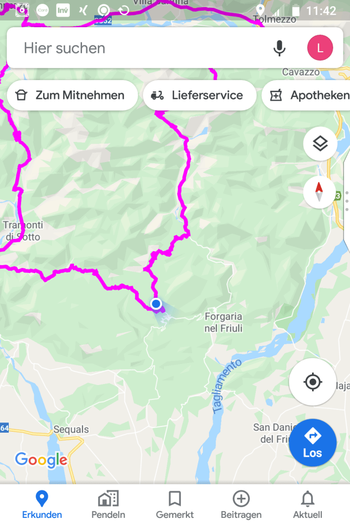 Ein Zoom ins Navi zeigte eine gestrichelte Linie, aha, ein Wanderweg über den Pass, na dann eben so.