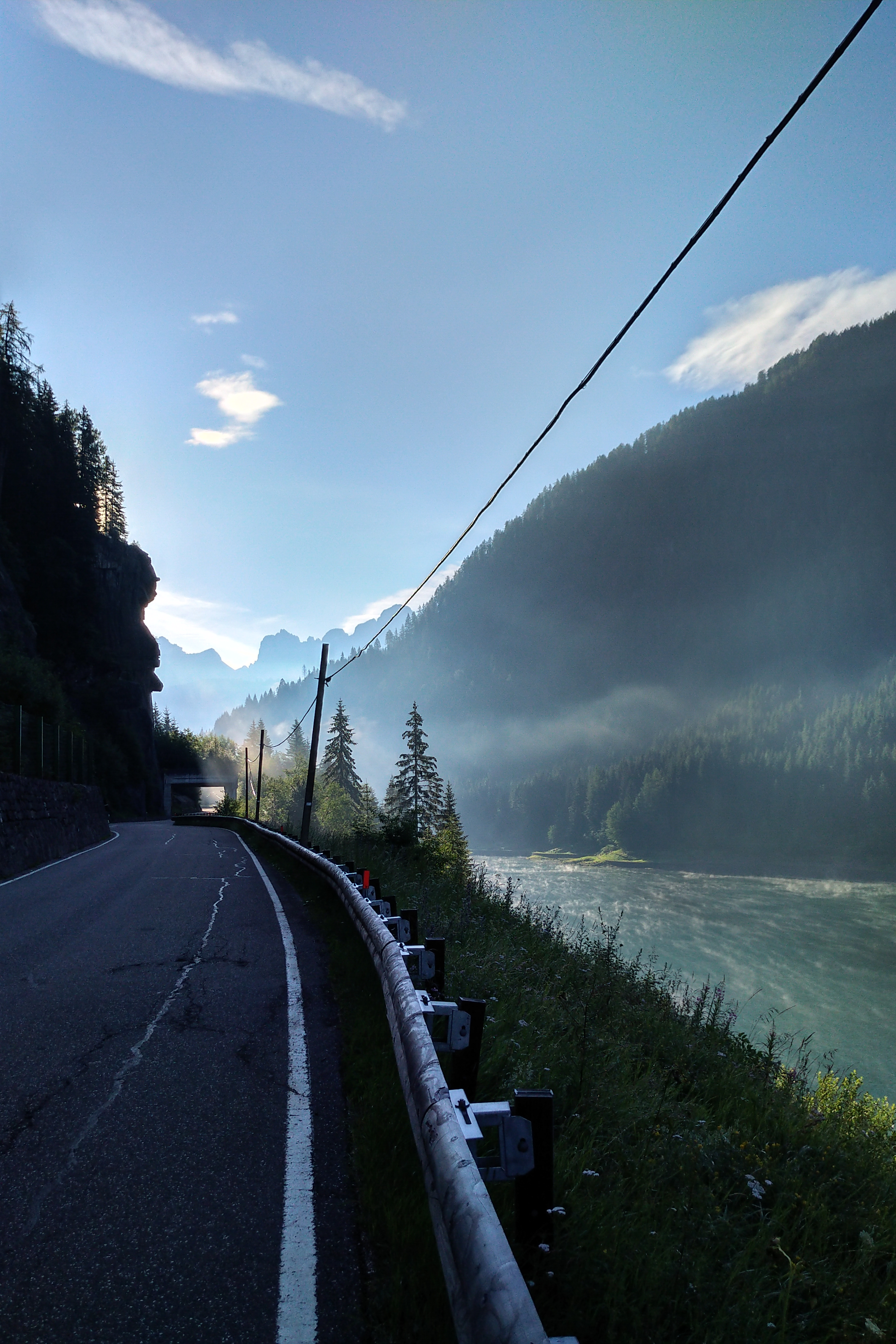 einer der ältesten Straßenpässe in den Dolomiten kam als erstes. Traumhaft schöne Anreise im Tal