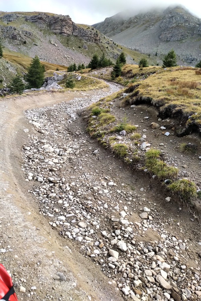 Dann ging es irgendwo rechts in eine seeehr kleine Straße auf eine anderen Pass, die Auffahrt noch ganz schön, die Abfahrt dann echt übler Schotter.