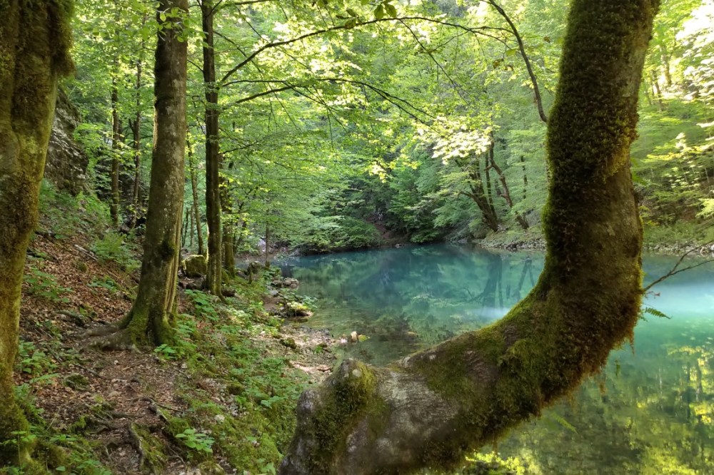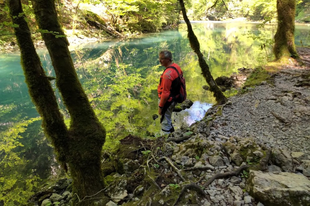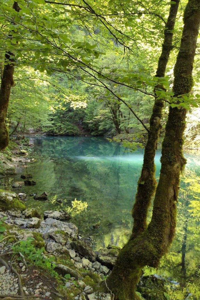 So haben wir es zur „Kupa Quelle“ geschafft (mit einer kurzen Wanderung), die ein naturtechnisches Schauspiel darstellt: aus einem Loch von 25 Meter Durchmesser entspringt der Fluss „Kupa“ )