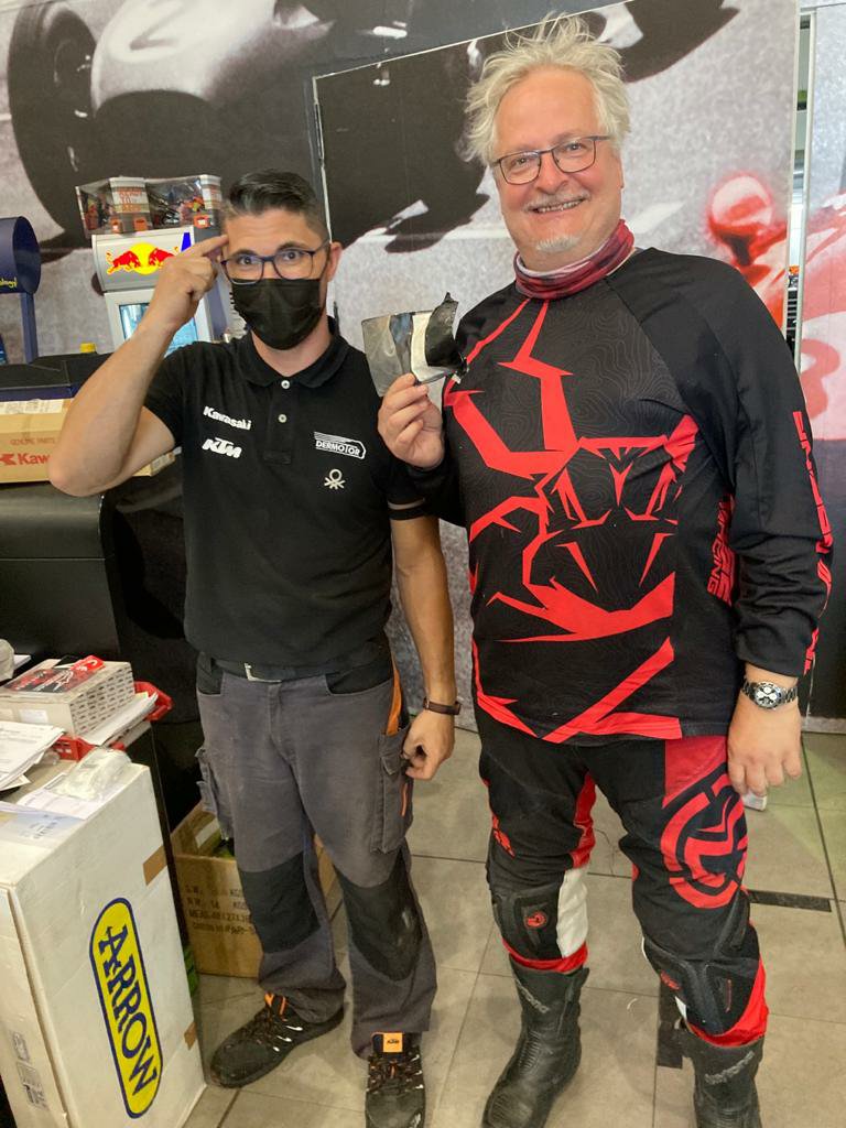 Hüstel, räusper. Ich war mir sicher, ich hatte den KFZ-Schein unter die Sitzbank geklebt, so wie bei der AfricaTwin und der Yamaha auch. Aber da war er nicht. Hatte ich ihn doch zuhause vergessen? Nun, so sagte ich es zumindest. Ja aber im KTM System stehe ich nicht als Besitzer, da könne er nix machen. Erst mit den richtigen Anworten auf deren Ratespiel (ob ich „Dörr“ kenne, na klar, der KTM Händler meines Vertrauens, was ich da im letzten Jahr habe machen lassen, na die 10.000 Kilometer Inspektion. Ok, bestanden). Eine erste Systemanalyse (1.5 Stunden): alles gut. Einspritzanlage, Zündkerzen, der Fehler im Fehlerspeicher war das mit dem Seitenständer. HmHm, Kompression zu niedrig. Oje, das könne alles sein. Nockenwelle ein Grad verrutscht, Ventil eingelaufen, Kipphebel gebrochen, Kolbenring abgesprengt. Da kann er erst am Nachmittag dran. So gegen 5 sollen wir wiederkommen.