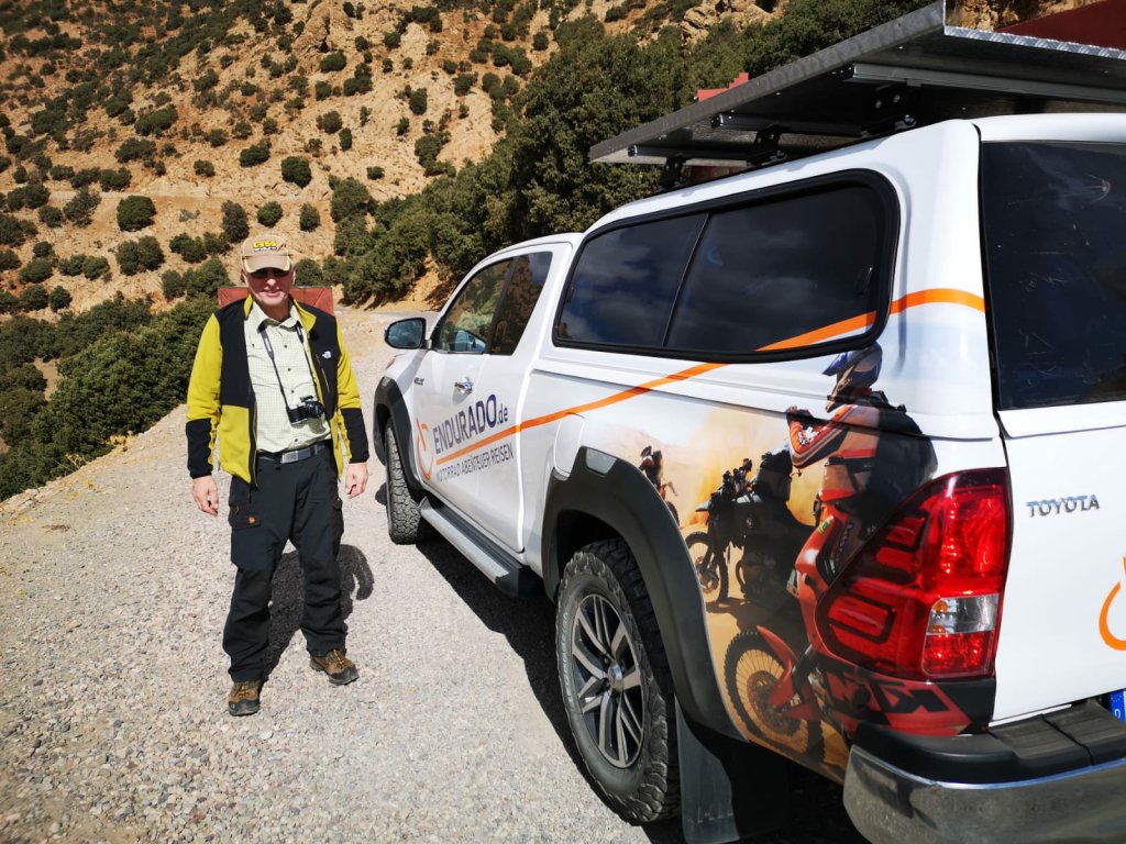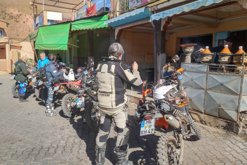 „Was soll ich denn anziehen“ ist eine in dieser sozialen Gruppe eher ungewöhnliche, aber doch überraschend intensiv ventilierte Frage. 8 Grad bei Abfahrt, der Hohe Atlas wartet mit über 2000 Metern. Aber am Ende hatte jeder genug druntergezogen, um nicht zu frieren.