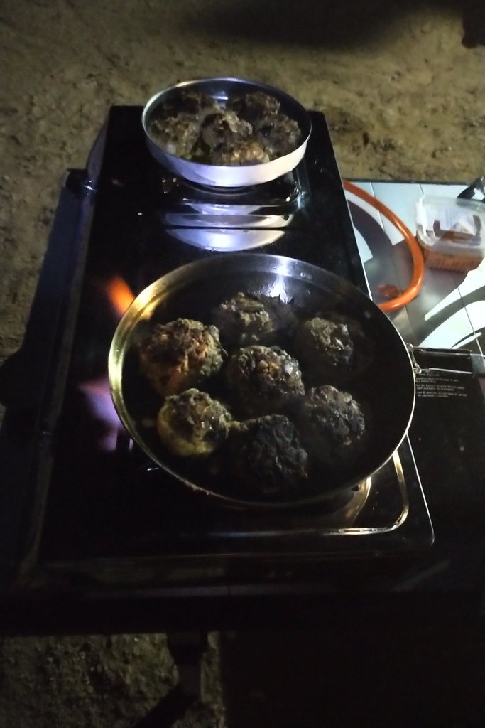 Abends gab es meine legendären Frikadellen, wenngleich nicht unter idealen Bedingungen. Aber keine ist übrig geblieben.