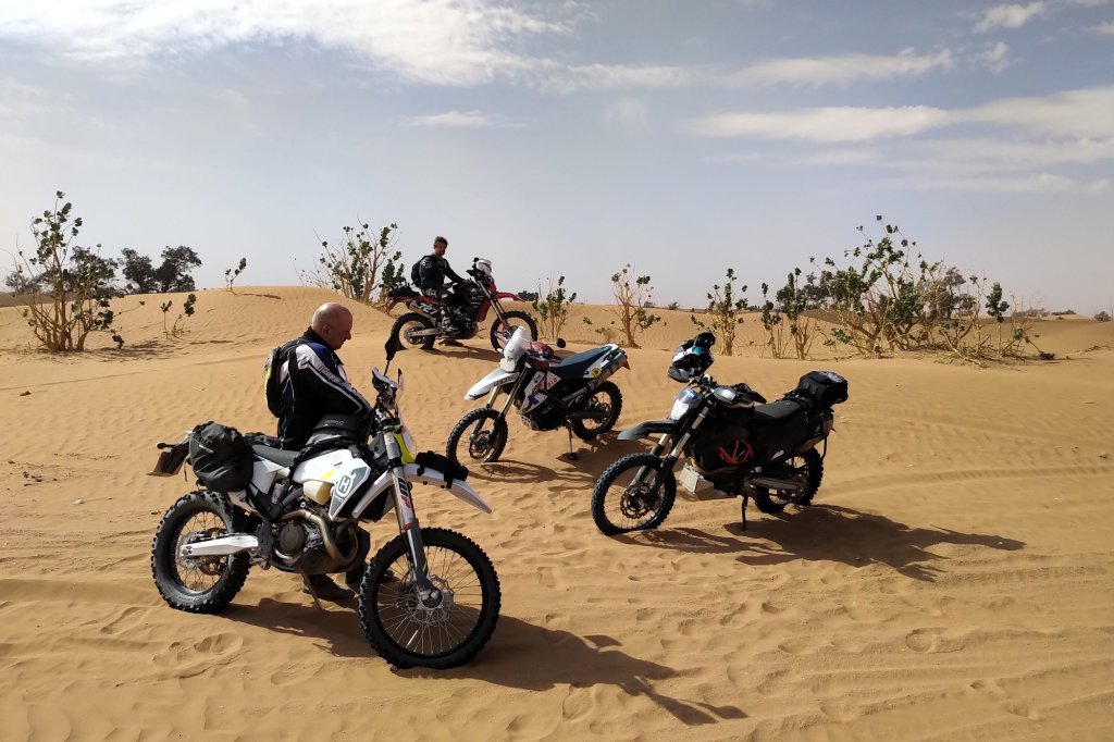 Die letzten 20 Kilometer übelst sandverwehte Piste. Fur die drei Rookies (Jürgen, Rolf und mich) recht anstrengend, bis irgendwann meine Kupplung (also die von meinem Motorrad) am Ende war.
