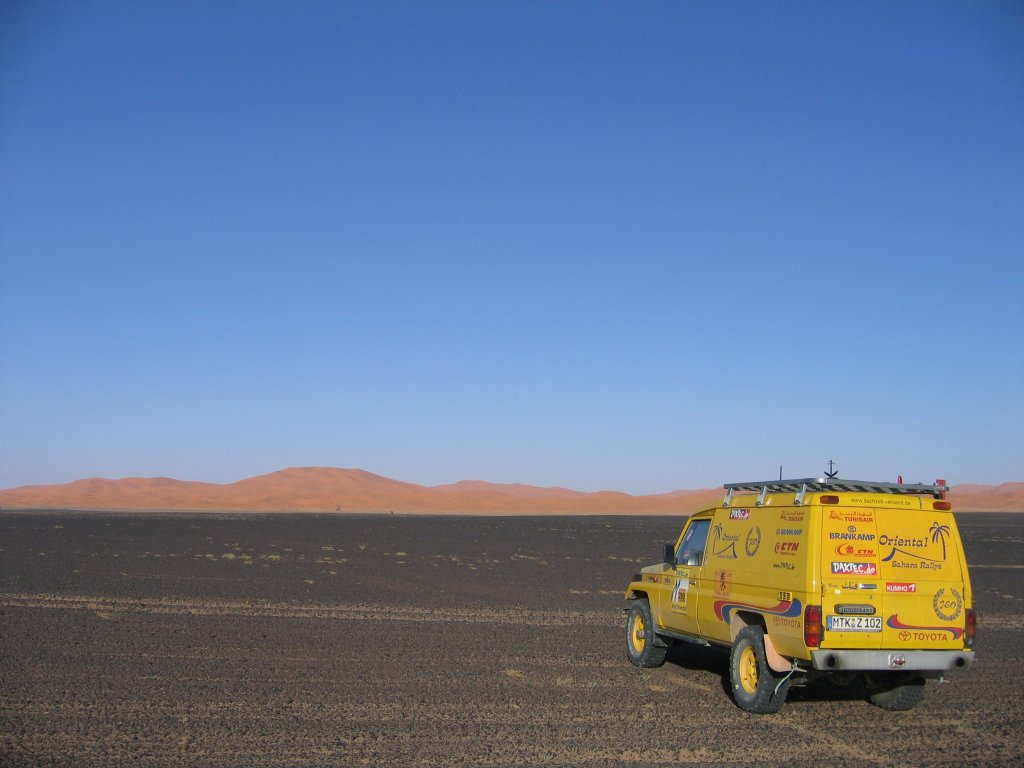 Es war ein interessantes Wiedersehen: vor 15 Jahren war ich hier am Erg Chebbie mit dem Auto während der Tuareg Rallye, und als ich dann am Nachmittag am Wasserturm stand, da war das schon berührend. Von dort sind damals die Tagesetappen durch den Erg gestartet.