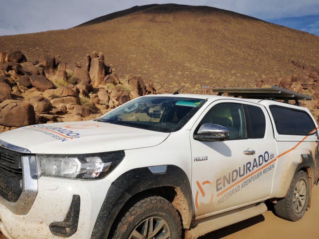 Dann ging es in den „Anti-Atlas“ , eine stundenlange Piste durch ein vollständiges Gebirge. Durchaus eine Herausforderung für mich, Benny und Ralph sind mit Markus als Speed-Guide vorneweg gedüst. Dafür hatten wir das Versorgungsfahrzeug immer in der Nähe für ne Cola.