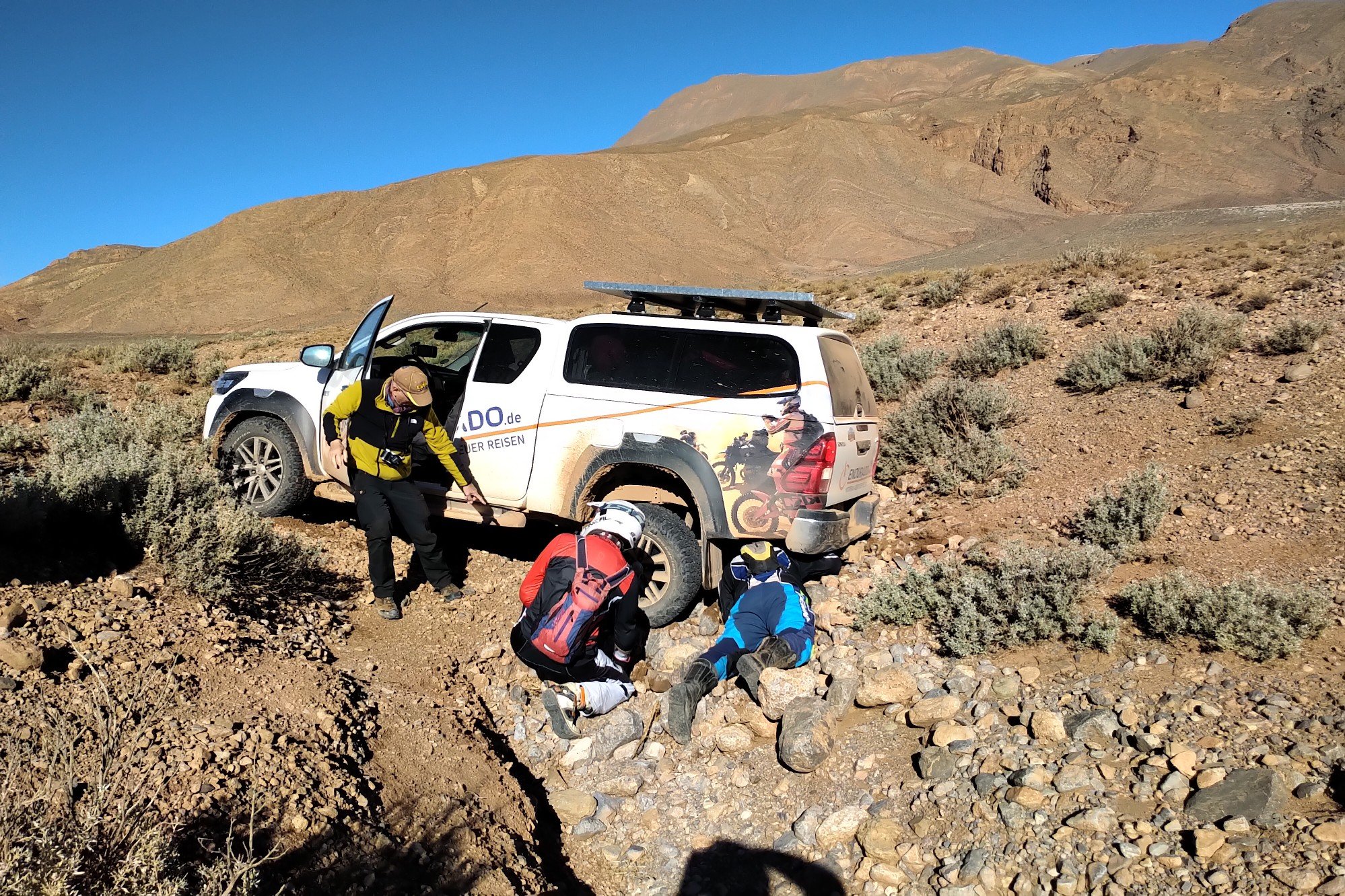 Heute ging der Weg über unbekannte Pisten nach Ouarzazate (unbekannt, weil wir ja durch den Regentag und durch einen Verlängerungstag zu in Merzouga etwas vom geplanten Weg abgekommen sind). Wieder einmal traumhafte Landschaften bei anspruchsvollen Pisten.