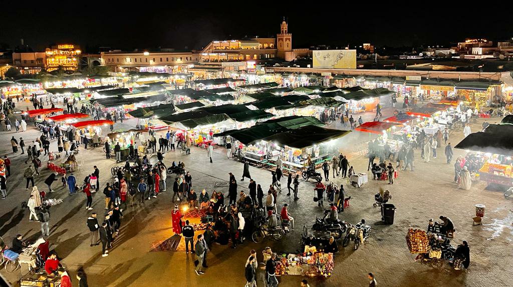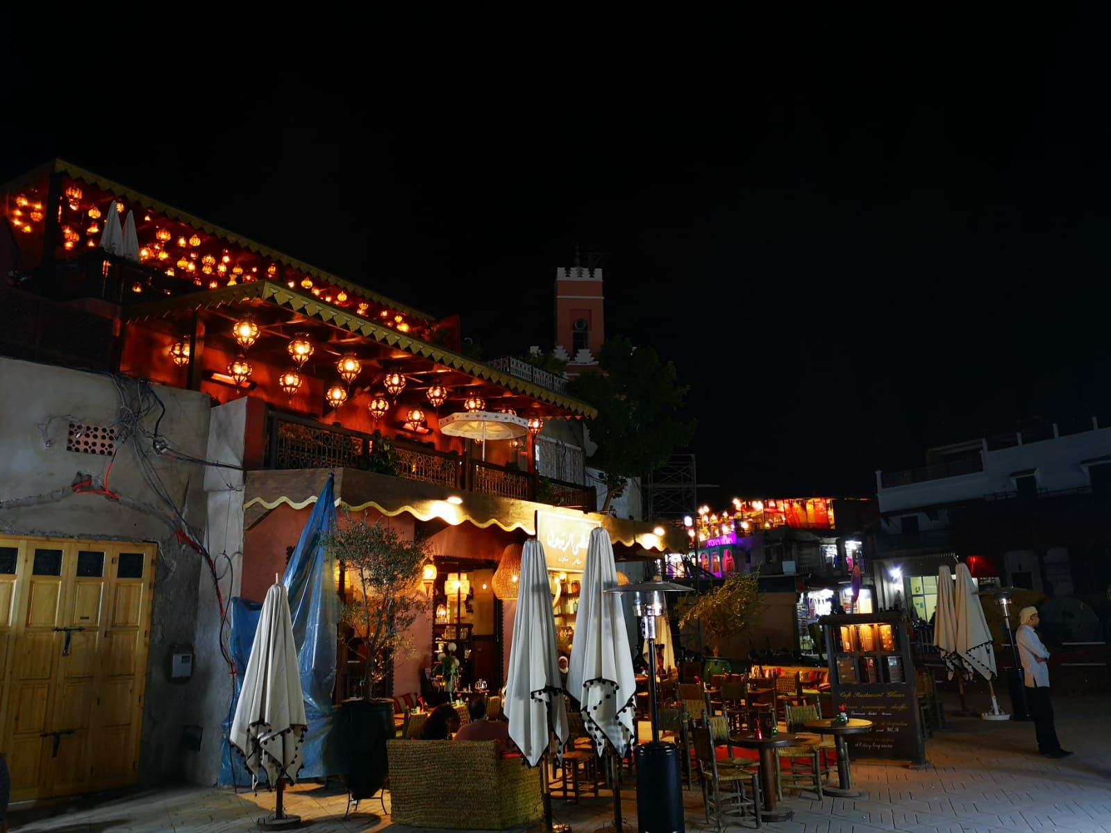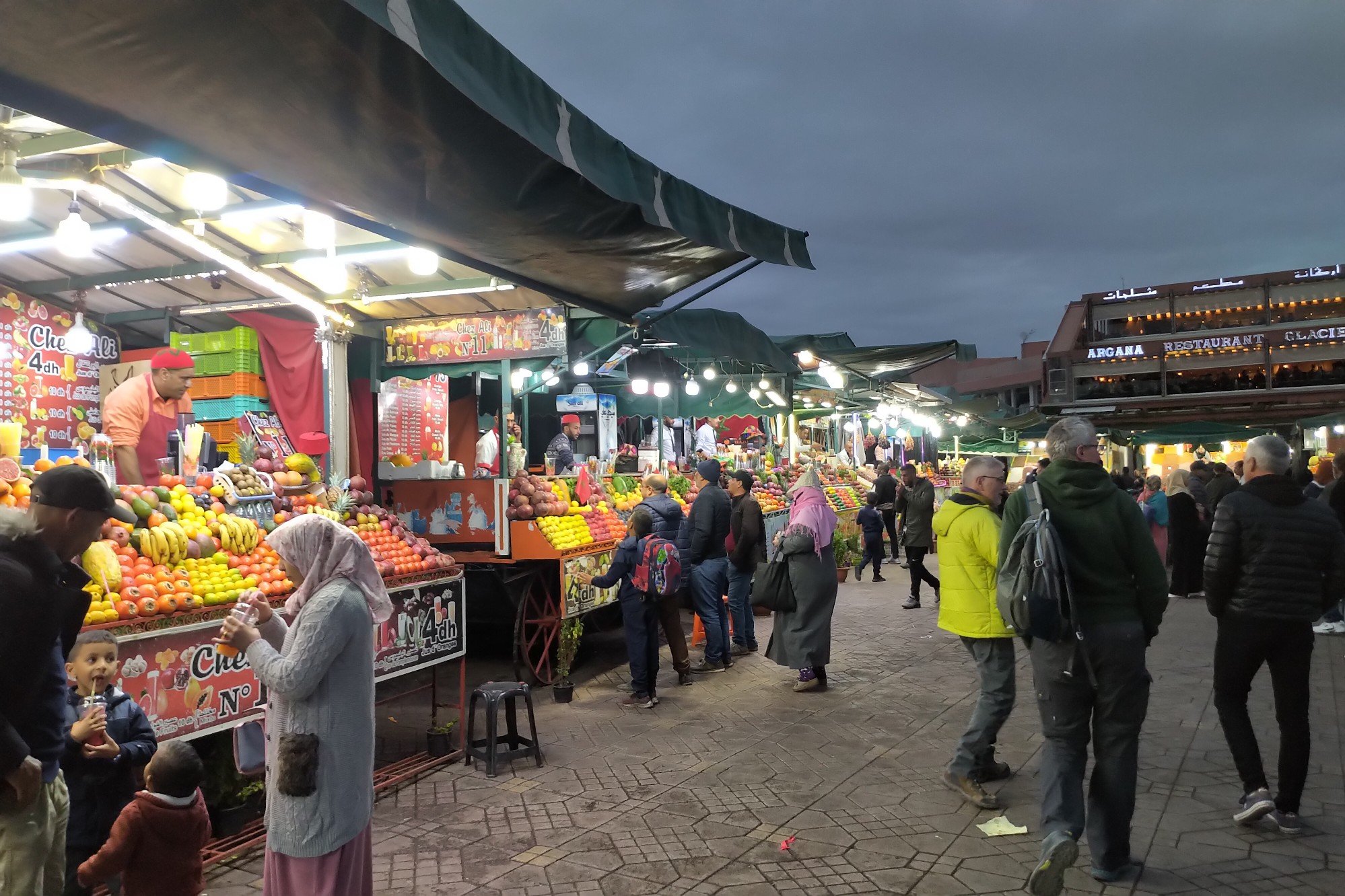 Und dann Abends auf den „Jemaa el-Fnaas“, der ”Platz der Gehenkten“ (am Turm der Moschee um die Ecke steht oben tatsächlich ein Galgen), zum Essen und danach noch durch den Souk geschlendert.