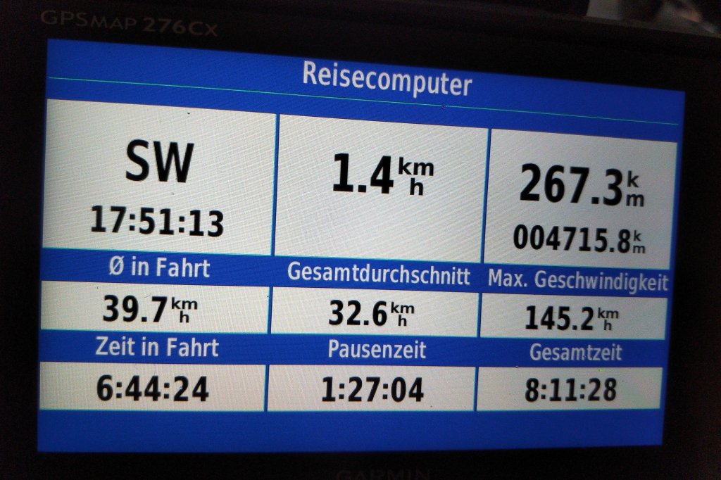 Wenn ich mir den Bordcomputer anschaue, mehr als 6 Stunden im Sattel, hat die sozialen mehr als nur das sie Kärtchen verdient.