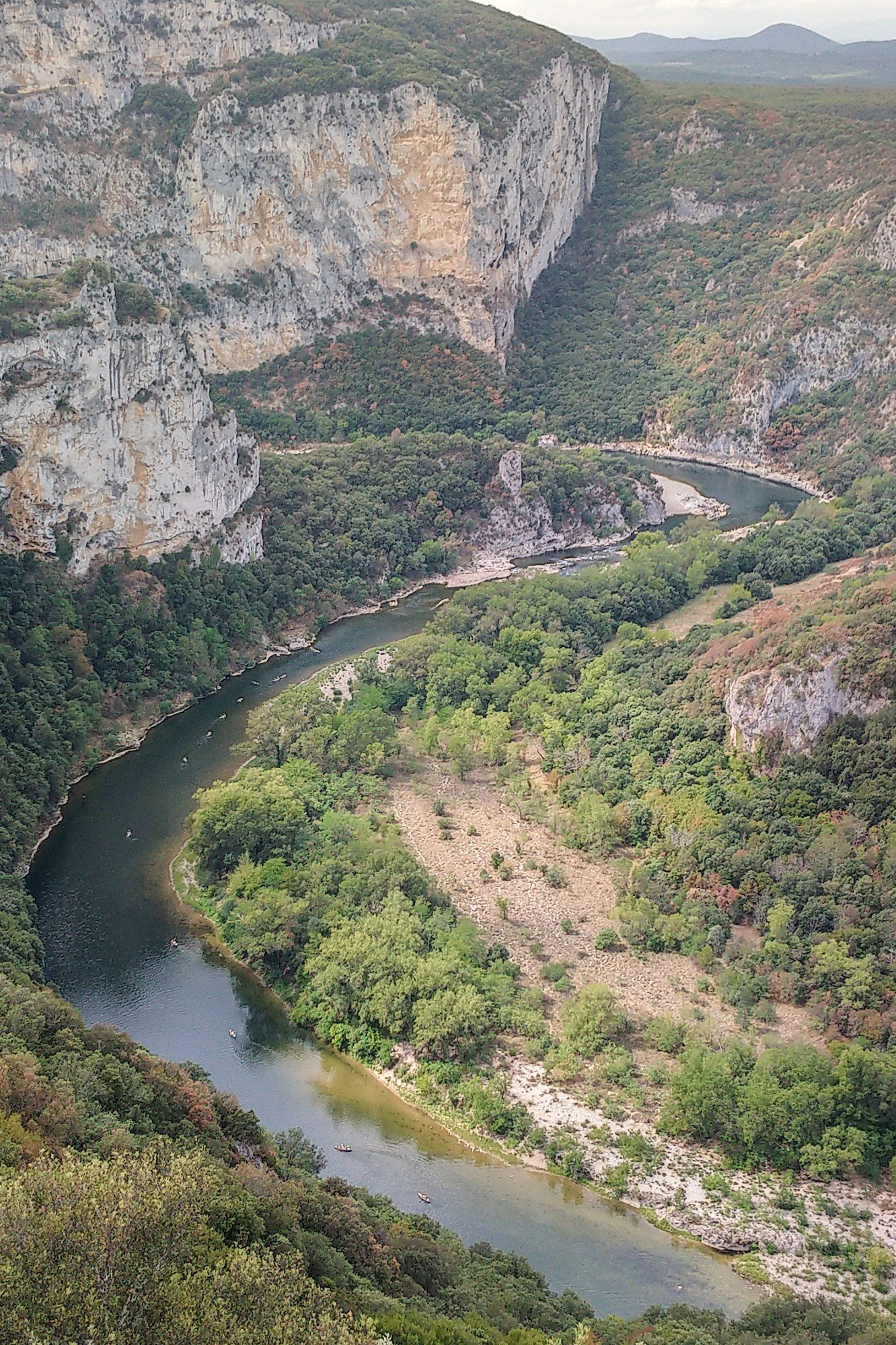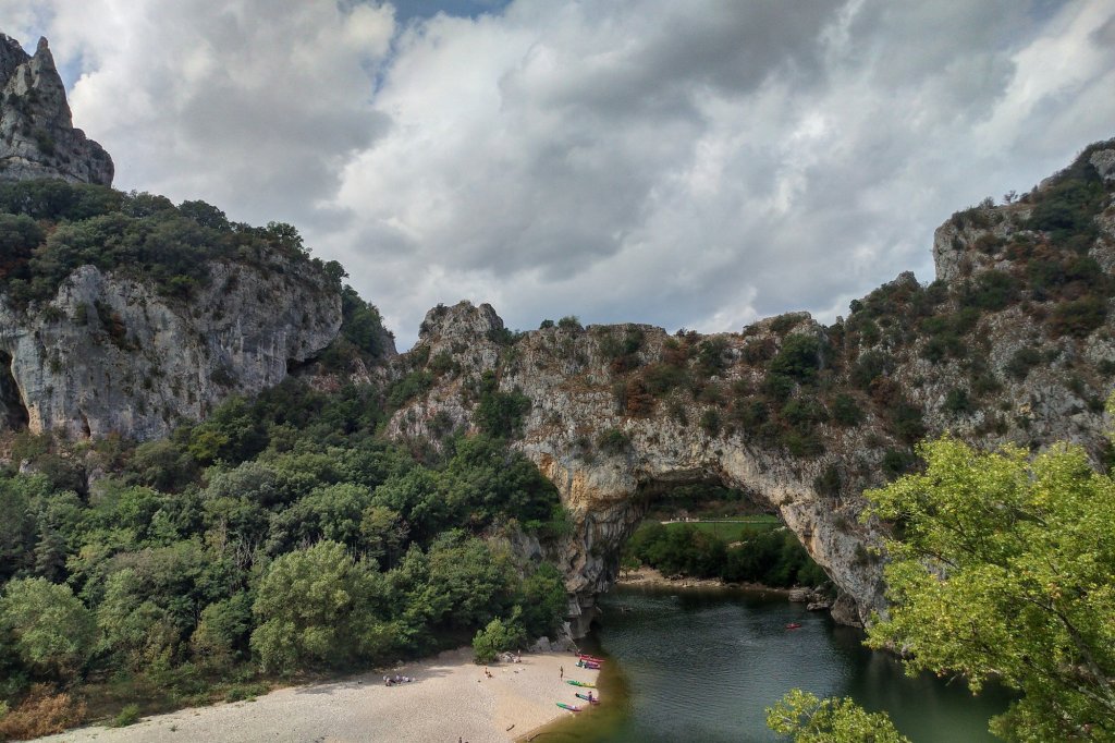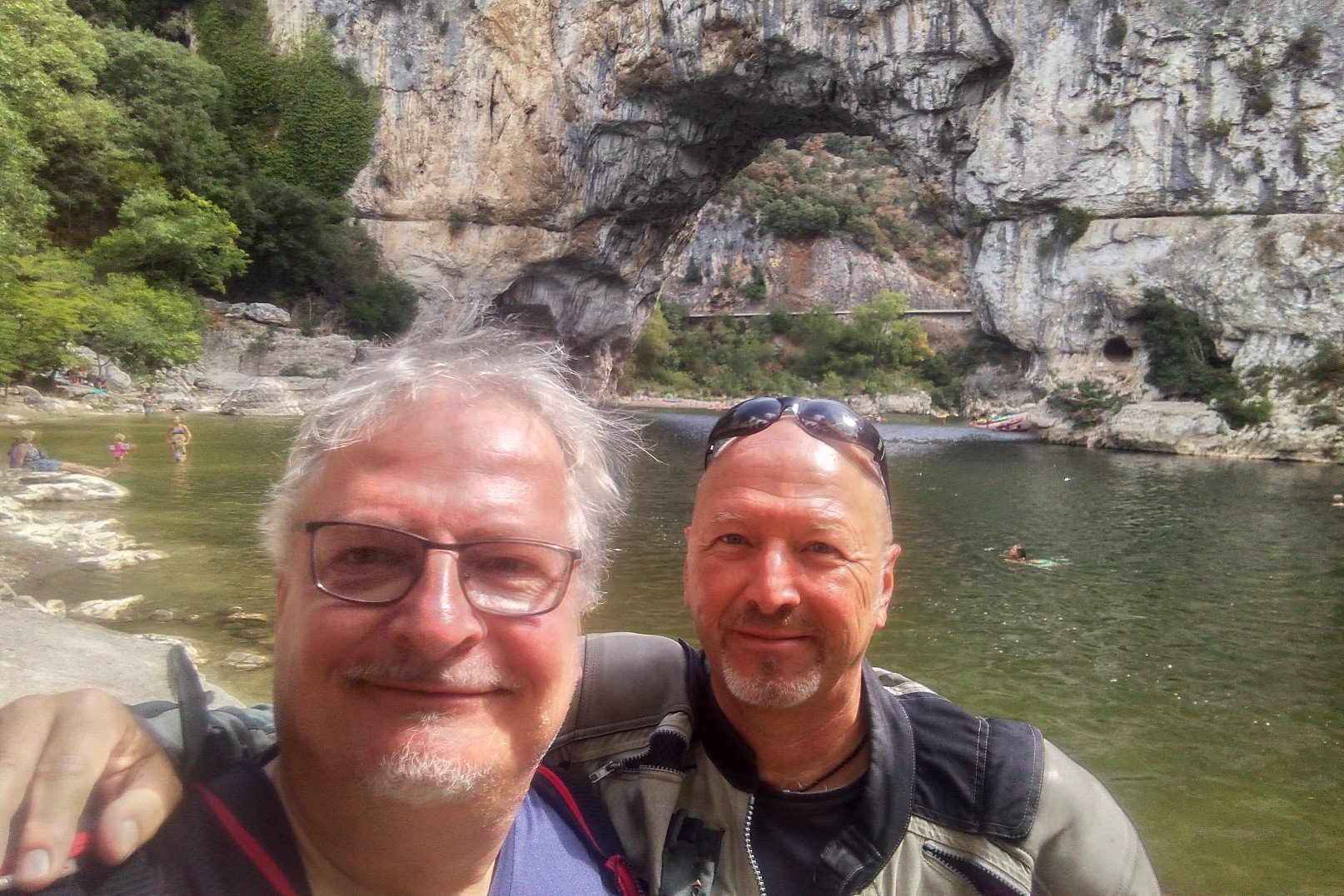 Die stabile Spätsommer-Hochdrucklage will sich nicht einstellen, der morgendliche Blick auf die WetterApp zeige zahllose kleine, aber regnerische Gebiete von Westen über die Berge ziehen. Die sich Richtung Osten auflösen sollten. Also die Osttour eingeworfen, die nicht zufällig an den touristischen HotSpots vorbeiführte: der berühmte (und größte europäische) Natursteinbogen über die Ardeche (hatte ich erwähnt, dass „die Ardeche“ auch ein Fluss ist?)