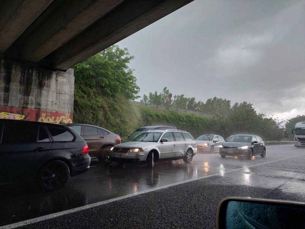In Sorge um Tornado (weniger um den alten Benz) haben wir dann, nicht die Einzigen, unter einer Brücke abseits der Autobahn Zuflucht gesucht.
