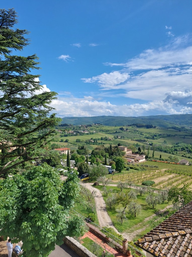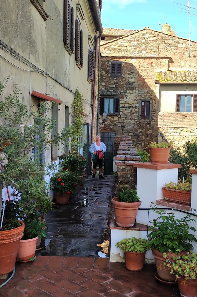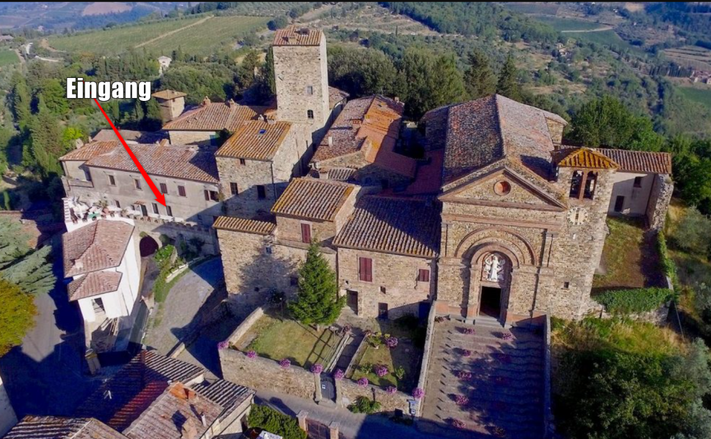 Pünktlich eine halbe Stunde vor dem Ziel wurde das Wetter wieder gut, die Sonne kam raus, und wir kamen zu unserem Appartement in einem Seitenflügel des alten „Castello di Panzano in Chianti“. Der Ursprung der Burg ist unbekannt, sie entstand wahrscheinlich durch die Republik Florenz, die die Burg als Außenposten zur Verteidigung gegen Angriffe aus Siena nutzte.