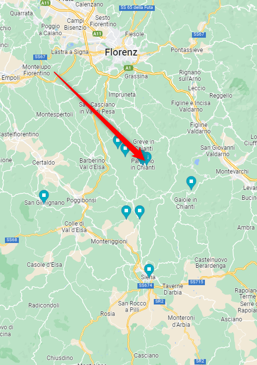 Eine lange und laut Erwartung ereignislose Anreise bis kurz vor Siena (Panzano in Chianti) war geplant.