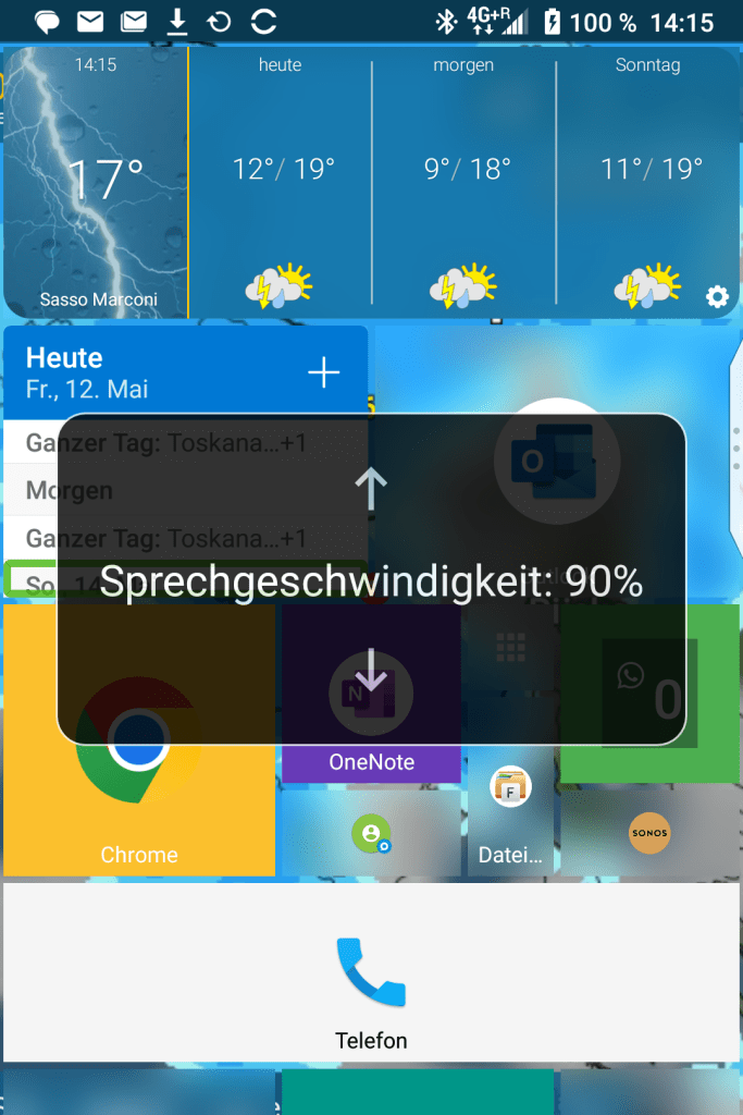 Beim Warten habe ich unbewusst eine neue Funktion an meinem Handy aktiviert („TalkBack“), die für Blinde gedacht ist: Jeder Touch auf dem Display ruft nicht die gewünschte Funktion auf, sondern das Smartphone liest vor, was man da gerade angedatscht hat. Ein Wischen von oben nach unten (um die Einstellungen aufzurufen und diesen Quark abzuschalten), verändert nur die „Sprechgeschwindigkeit“ der Maschine: