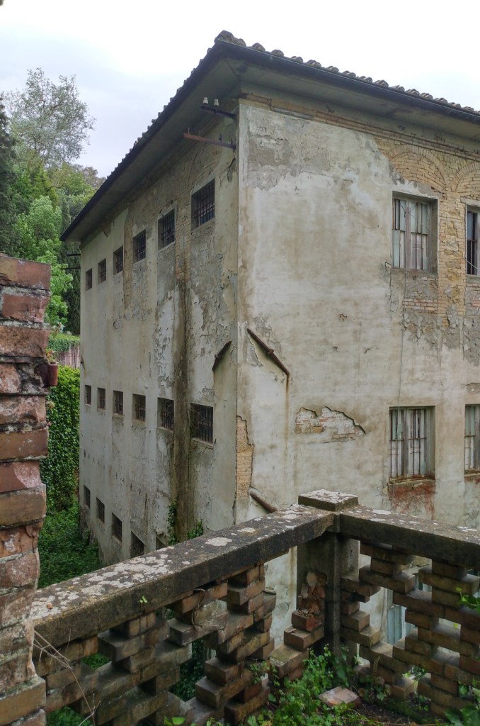 Als erstes wollten wir in das „Manicomio“ in Volterra, eine ehemalige Irrenanstalt mit schlechtem Ruf. Es wurde 1888 in einem ehemaligen Konvent gegründet und avancierte in den 50-er und 60-er Jahren zum größten „Irrenhaus“ in Italien, mit den damals wenig zimperlichen Methoden (Elektroschocks, Insulin-indiziertes Koma, Test mit Giftstoffen, Zwangseinweisung von politisch unbequemen Menschen). 1978 wurde es dann geschlossen und wurde dem Verfall übergeben. Es gibt wohl Führungen durch diesen „lost place“, aber auf der Webseite kann die Buchung nicht abgeschlossen werden, vor Ort erfuhr ich, dass wohl am Wochenende eine Führung möglich ist.