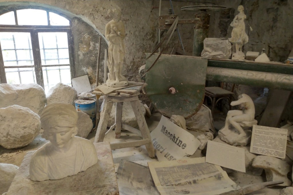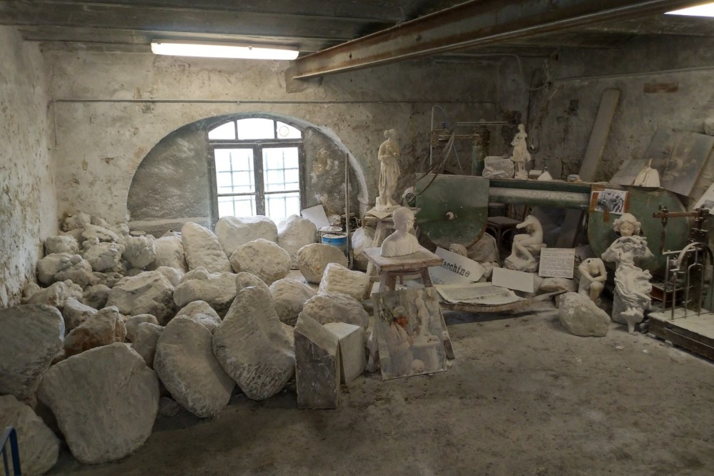 Um die Ecke gab es eine Alabaster-Werkstatt, dort konnte man live beim Schleifen und Feilen an diesem Gips zuschauen, und auch die weniger geglückten Ergebnisse sehen: