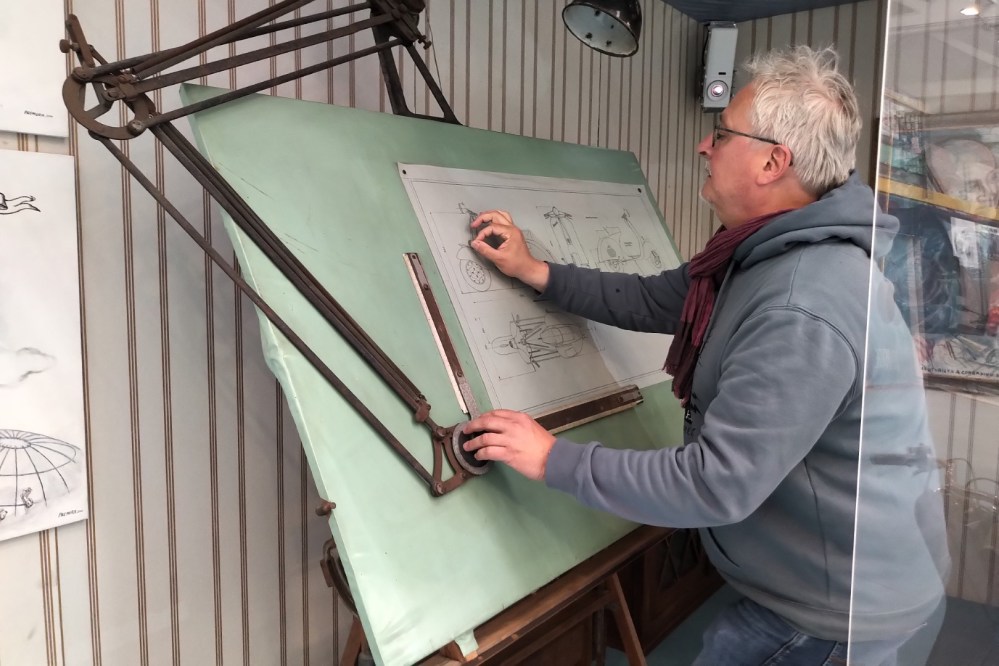 Und wie schon im Guzzi-Museum musste ich mich kurz an den Originalschreibtisch des Vespa-Erfinders Corradino D’Ascanio setzen