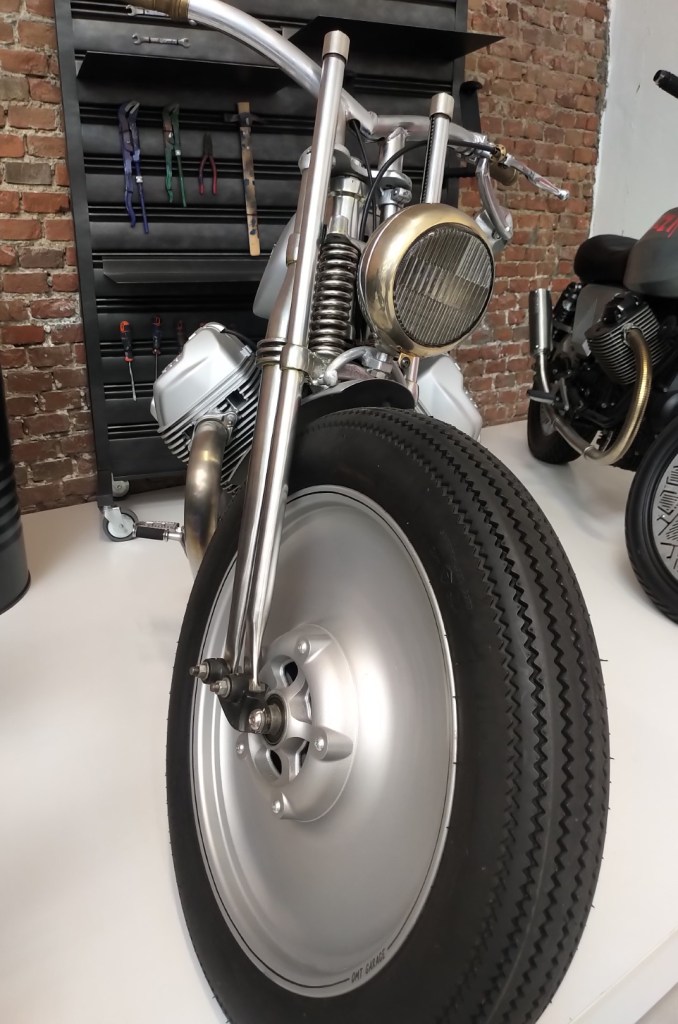 Guzzi gehört ja mittlerweile auch zum Piaggio Konzern, deswegen gab es hier auch ein paar zu sehen, hier ein besonders schnittiges Custom-Modell:
