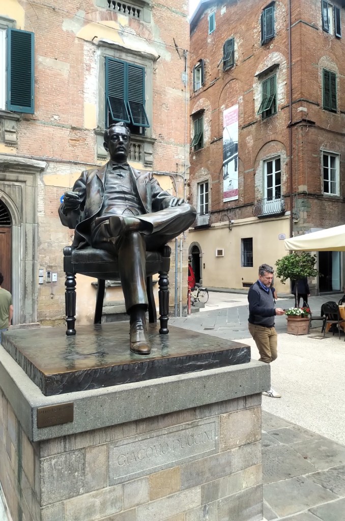 Dort haben wir hinter der Stadtmauer einen Parkplatz für Motorräder gefunden und sind nach einem Salat in einem angenehmen Restaurant ins Puccini-Museum (sein Geburtshaus). Interessant fand ich, dass wir im Museum ganz allein waren, aber direkt davor rund um den Platz mit seiner Statue die Leute in den nach seinen Opern benannten Cafés saßen und ehrfurchtsvoll die Statue anhimmelten. Der Fotoplatz vor der Statue war sehr begehrt, ich musste warten um ihn mal fast alleine ins Bild zu bekommen.