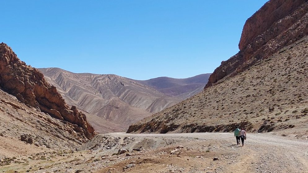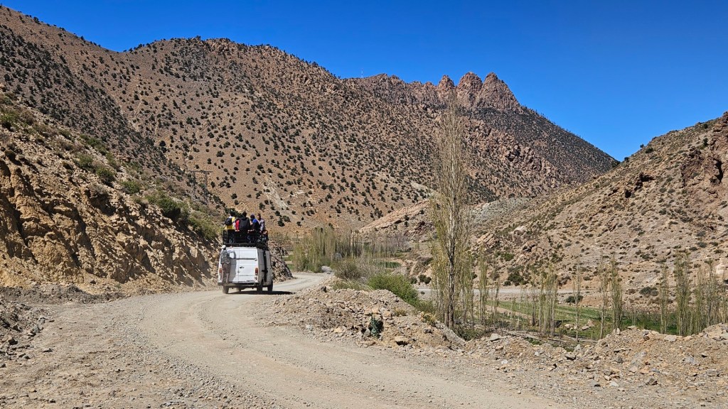 Von dort ging es in einem Bogen dann wieder zurück nach Imilchil durch das Tal, das es zu testen galt. Und mal wieder: Die Farbe der Straße auf dem Navi hatte nichts mit der Realität zu tun. Für 80 Kilometer durch dieses Tal haben wir 3 Stunden gebraucht. Völlig zerschossene Straße, schlimmer als Schotter, und zwei Pässe bis auf 2.600 Meter.