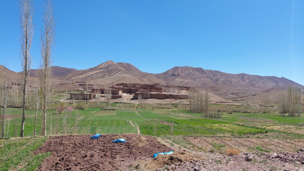 Als ich anhielt, um dieses Dorf am Wegesrand zu fotografieren, kamen gleich drei Kinder angespurtet (die haben offensichtlich ob des Ramadan-Ende schulfrei) und fragten nach Bonbon und Geld. Ich habe ihnen erklärt, sie sollen Deutsch lernen und bei Rewe eine Ausbildung machen, aber nicht rumschnorren (ok, ich habe gesagt „nix Bonbon, nix l’argent“)