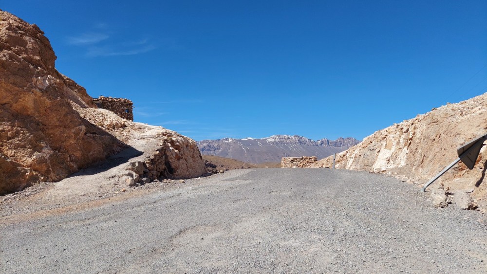 Aber die Strecke war ein Traum. Auf insgesamt über 100 Kilometer durch die Berge (zwei Abzweigungen, mehr nicht) im hohen Atlas. Die Straße größtenteils sehr gut, wenig Verkehr, und atemberaubende Landschaften.