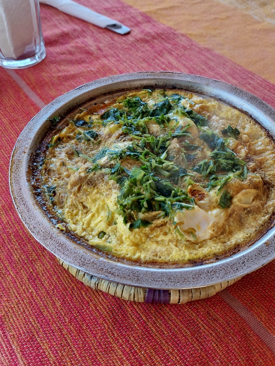 Wir sind dann zum frühen Mittagessen (11:30) in eine Terrassen-Wirtschaft um die Ecke und ich habe mein erstes Omelette Berber gegessen: