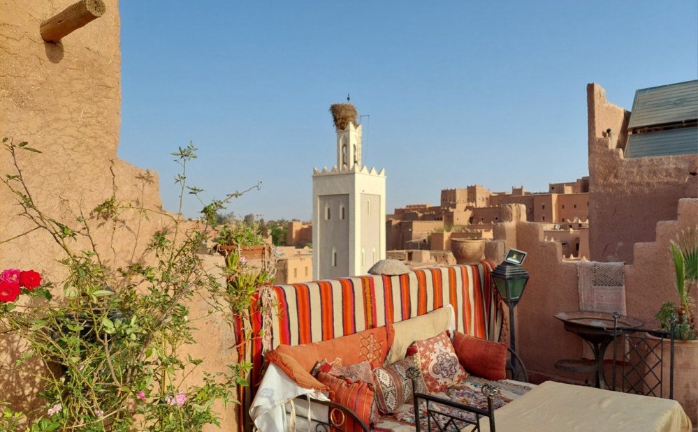 Das Hotel in Ouarzazate war ja sensationell, und das Frühstück in der Früh gab nochmal einen Blick auf die Altstadt der ansonsten recht modernen Stadt frei: