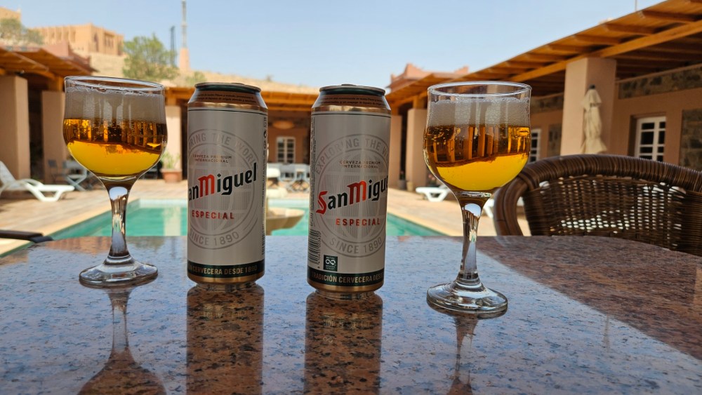 In Tata kamen wir viel zu früh an, weil halt hier alles mit 110 (oder mehr) gefahren werden konnte, daher ein frühes Stiefelbier gegen 14:00 in dem Hotel, in dem wir morgen sind (da fahren wir einen Rundkurs):