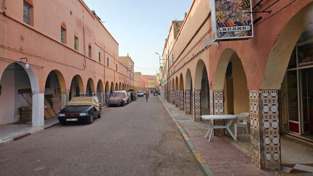 Tata ist nicht ganz so hässlich wie andere Städte, hier eher Einheitsarchitektur mit Wandelgängen für die Geschäfte.