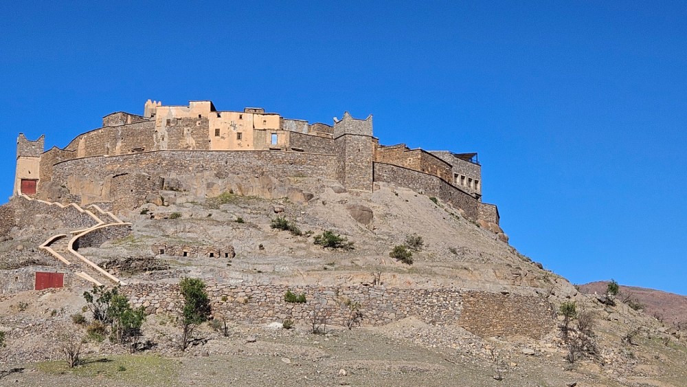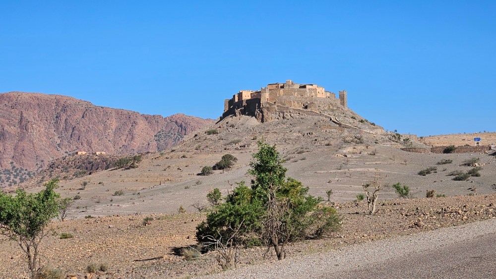 Heute geht es von Tafraoute nach Norden, noch eine kleine Bergwertung (Notiz: Schauen, ob es unten durchs Tal etwas geruhsamer ist, denn die Bergstrecke ist zwar gut ausgebaut, aber doch sehr sehr kurvig. Wir hatten bis hierher genügend Bergwertungen).