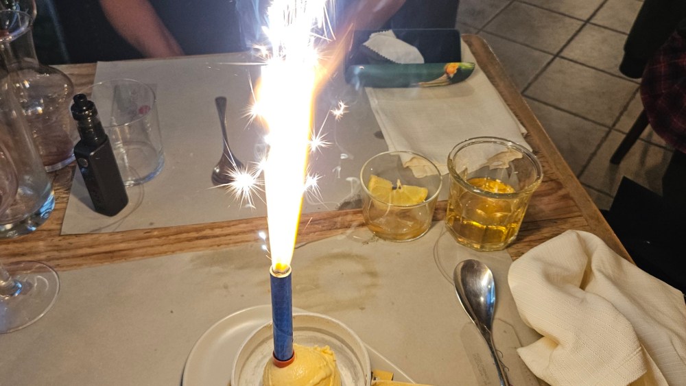 Als Geburtstagskind habe ich dann auch ein kleines Tischfeuerwerk auf Nachtisch bekommen: