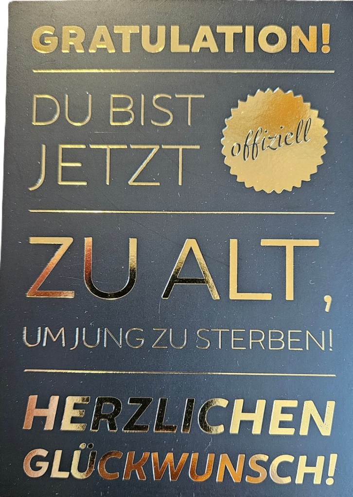 Ja, so wird man von Freunden zum Geburtstag begrüßt. Stimmt aber auch. Mit 60 ist schon eine Marke erreicht. Was aber einen nicht daran hindern sollte, das Moped zu besteigen und weiter durch die Landschaft zu kurven.