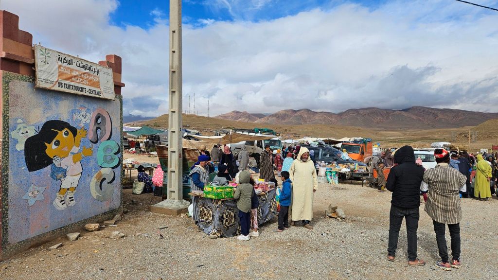 Die Schlucht hinauf läuft man in Tamtetouch ein, ein sehr kleines Bergdorf ohne Attraktion, aber Dienstags mit Markt. Und der ist deutlich einfacher gehalten als vor 2 Tagen im Rissani: