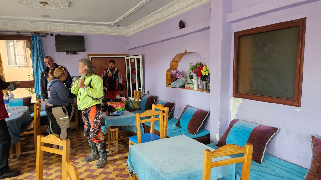Daher wurde morgens eine kleine 60 Kilometer Offroad-Runde gefahren, und dann vom Hotel über die Straße zum nächsten Hotel, über den gleichen Pass wie gestern. Nur war es heute etwas wärmer und wir konnten am Café am Pass „Tazazerte“ eine Pause einrichten (habe allerdings keine Fotos gemacht, die besseren sind hier vom April).