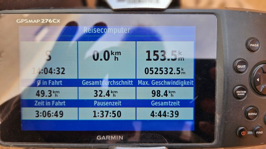 Mit der Zeit kam auch der Rest an, die Logistik war heute etwas schwieriger: eine Erkältung und so ein Magen/Darm-Ding geht um, schon vor ein paar Tagen ist der Jüngste für 3 Tage ausgefallen, der Beifahrer des Versorgungsfahrzeug ist erneut als Ersatzfahrer eingesprungen. Nun hat es letzten Abend sowohl ihn als auch eine Fahrerin erwischt. Sie konnte auf keinen Fall fahren, der Ersatzfahrer hat alle verblieben Kräfte gesammelt und ist ihr Motorrad über Straße gefahren, während sie im Auto saß. Hoffen wir, dass es beiden morgen wieder besser geht.