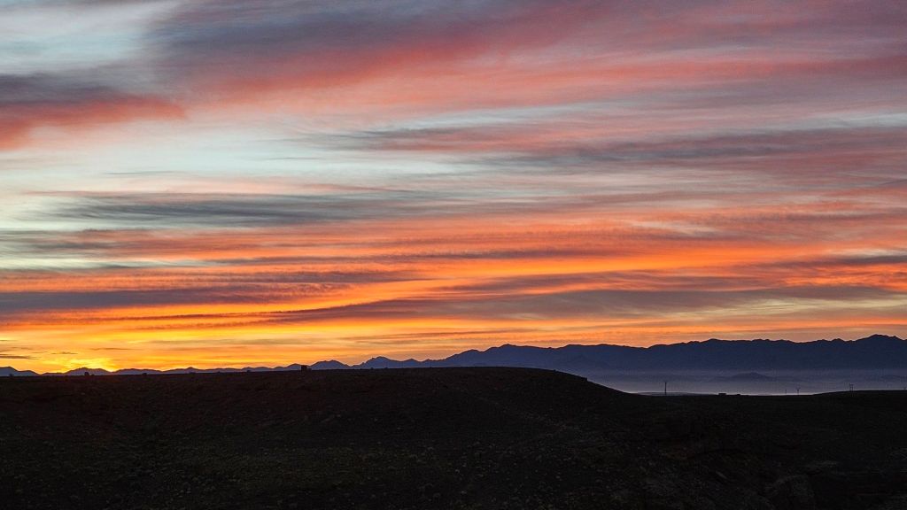 Auf einer kleinen Passhöhe Blick auf „bunte“ Berge: