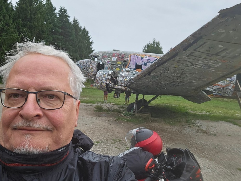 In der Nähe ein beliebter Fotostop an einem alten Flugzeug (Parkplatz, Pommesbude, alles da):