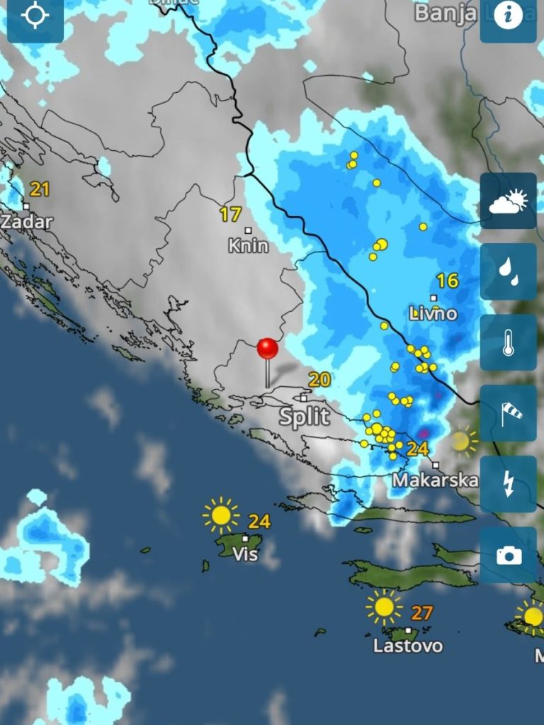 Das Regengebiet war irgendwie über mich hinweggezogen, ohne dass ich nass wurde, und an der Küste schien die Sonne. So bin ich dann kurz vor Split am Meer gelandet: