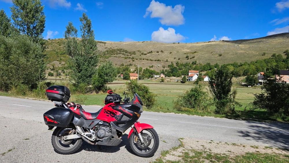 Ab Mostar wurde es dann wahrer Motorradurlaub: Strecken von 50 und mehr Kilometer durch die Berge, die Kurven in einem Rhythmus, als hätten die Straßenbauer bei der Planung irgendeinen groovigen Soul gehört. Stundenlang den gleichen Song. Also so eine Straße habe ich noch nie gesehen. Unfassbar. Dann mal eine kleine Ortschaft,