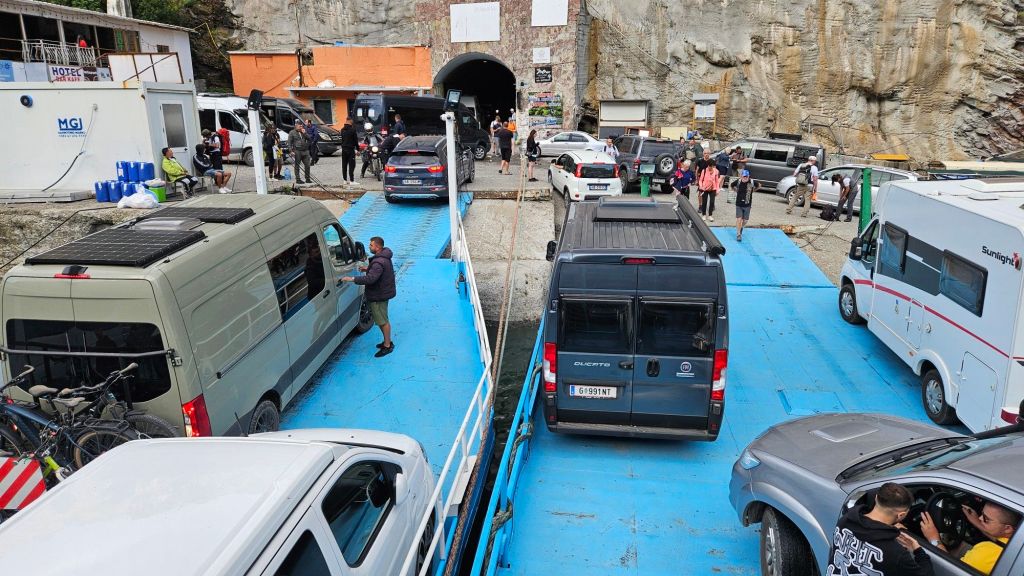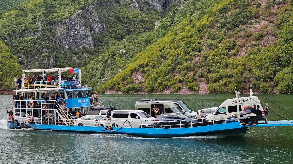 Heute früh ging es dann auf die Fähre über den bei Touristen sehr beliebten Koman-Stausee. Es ist nicht nur eine schöne Fahrt über den langen See durch die Berge, der See ist auch der größte Stausee in Albanien und versorgt ca. 70 % der albanischen Haushalte mit Strom.