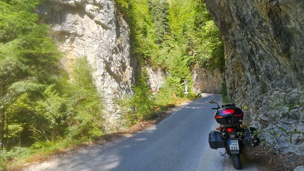 Die Straße durch die Hügel war fantastisch, Motorradfahren vom Allerfeinsten. Und Schlucht können die in den Bergen („Rhodopen“) auch: